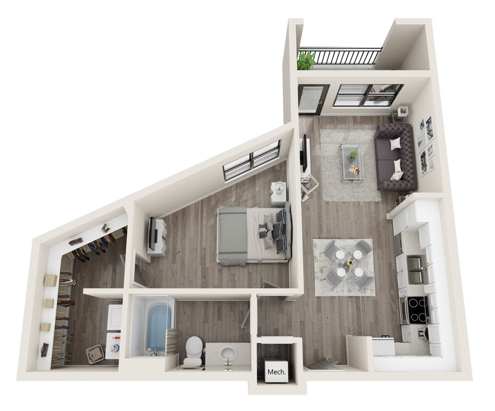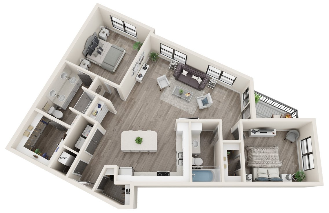 Stockyard Lofts offers nine different floor plans that include studio, one-bedroom, and two-bedroom options. These open floor plans allow you to fully optimize the space to suit your lifestyle, whether that means hosting gatherings, playing with your pets, or practicing morning yoga.